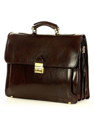 Teczka męska skórzana MARCO MAZZINI handmade - ROBERTO Classic ciemny brąz